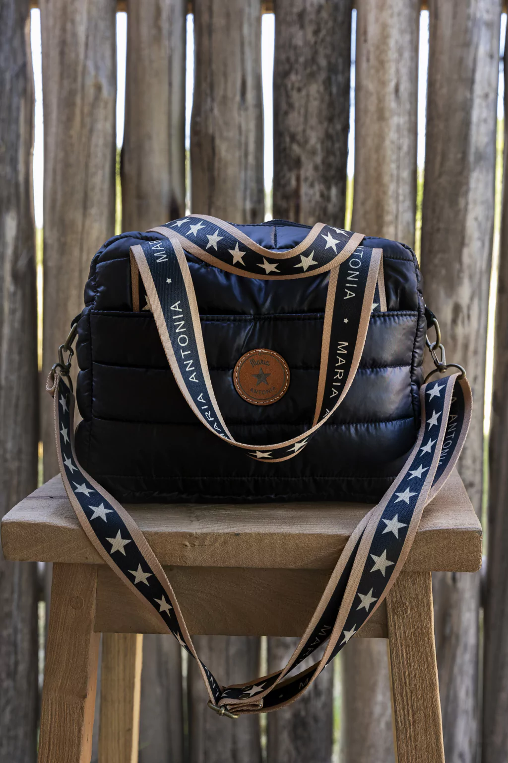 Baúl de material sintetico cire canelon puffer negro con cierre diente perro. Tiene forro